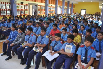 It was a day of Inspiration for students when Cdr. B. Amar Deepak an alumnus of our school visited and motivated hundreds of students. He was nostalgic and recollected the days when he joined the school way back in 1993. Though he was a student of the school only in Class 10th, he had a lasting influence on him. He appreciated the discipline which was inculcated in him here. He advised students who were interested in joining Defence and Navy to have core principles in life such as responsibility, courage, integrity, honesty and gratification. Children should aim high and while reaching it they should not fall to fallacies. Being compassionate is the greatest quality one should have.
