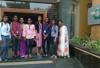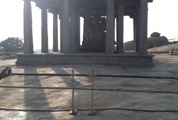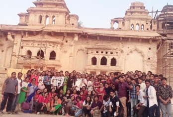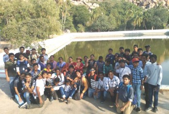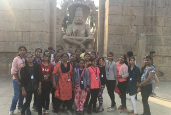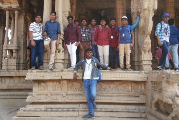 Students were mesmerized to see the scenic beauty of Hampi, which welcomes you to its world of huge boulders and lush green trees alongside the river silently flowing making its course. The enthusiasm of students boosted after seeing the ruined temple complexes of the VijayanagaraEmpire on the banks of river Tungabhadra. The team enjoyed watching the beautiful architecture of Virupaksha temple, Carved Stone Chariot, Vitthala temple, Krishna temple, LotusMahal, Elephant’s Stable, Royal Enclosure, magnificent monolithic idol ofUgraNarasimha, BadaviLinga and Mustard Ganesha. The Musical Pillars in RangaMandapa at Vitthala temple amazed all as it produced musical notes when struck. Students noted down the significance of every place as told by the Guide.