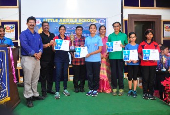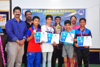 Little Angels School has added another page in the annals of its illustrious history by throwing its gates open to the young players of Table Tennis of the city. A two day Little Angels Cup Tournament was conducted in the school premises on 16th and 17th of February, in association with the Visakhapatnam District Table Tennis Association(VDTTA). The maiden effort was greeted with enthusiasm and as many as 20 schools participated. The individual participants were more than 300, a record of its own. Matches were conducted for boys and girls in mini cadet, cadet, sub juniors and juniors categories. In the inaugural function, the Founder Chairman of the school, Sri M.Venumohan declared the tournament open in the presence of VDTTA Secretary, Sri D.V.S.Y. Sharma. The participants competed with enthusiasm to outshine one another. The matches were conducted fairly with 5 umpires and 3 referees monitoring them. In the Valedictory function organized on 17th February, the prizes were given away to the winners. Sri. J.K.Nayak, President and Sri D.V.S.Y. Sharma, Secretary of VDTTA graced the occasion. The Founder Chairman, Sri M.Venumohan advised the parents to recognize the kinesthetic skills of their children and suggested the students to start early to practice a game. The Director, Smt M.Ranganayaki congratulated all the winners.