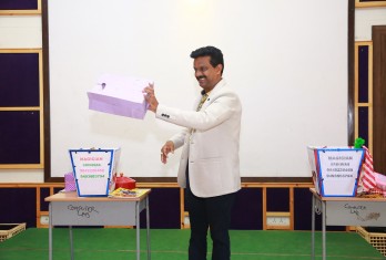 On 14th November, 2019 a special assembly programme was organized which started with a prayer song. The portrait of Jawharlal Nehru was garlanded by the Founder and Chairman and offered his tributes. The Principal, Ms. Nafeesa Begum and Smt. Indumalini, the Headmistress offered floral tributes. Speaking on the occasion the Founder and Chairman said that he strongly believes in the statement that, ‘Tomorrow’s World is built in the class room today.’ He asked the parents to recognize their child’s potential.