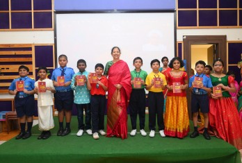 The day was celebrated in a traditional way with cultural performances put up by the students. The programme was a blend of songs sung by a group of students, followed by Kuchipudi dance performances by the students which completely enthralled the audience present in the auditorium. Students displayed their talent and skills in Telugu language speaking skills by reciting poems and speech on the importance of Telugu language.