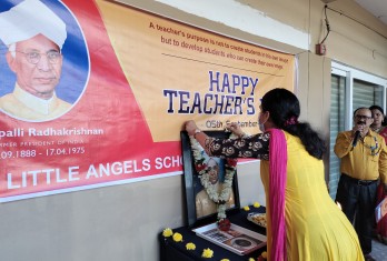 The morning assembly programme was hosted by the Green House teachers and it comprised of prayer, articles, speeches on Dr. Sarvepalli Radhakrishnan and role of teachers in shaping the society. Congratulating the great efforts of every teacher of Little Angels School, the Director Smt. Swathi applauded and the message of Our Founder and Chairman Shri. M.Venumohan was read out acknowledging the wonderful efforts of the staff in taking the school to the next level and also reminded the great responsibilities of the teachers. The Principal and Headmistress also greeted the teachers on this great occasion.