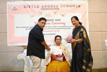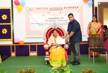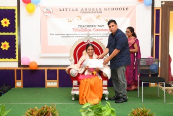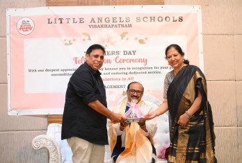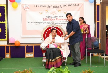 Later, 13 teachers including academic heads were felicitated who have completed 35 years,30 years and 25 years of service in the institution. Standing tall in the list of the felicitated is Mrs. N.V.S Laxmi Rajyam who has completed 35 years. The most experienced teachers of Little Angels School shared anecdotes from their journey in Little Angels School and thanked the management of the school for recognizing and honoring the work of the teachers. Chairman Sir congratulated all the felicitated teachers in his speech and wished that the young generation of teachers imbibe the work done by the senior teachers.