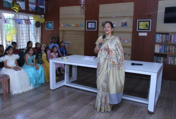 Smt. M.Ranganayaki in her speech, congratulated the regular readers and prize winners. She appreciated all the participants who have presented and taken part in the competitions and various activities. She advised students to make use of the facilities in the school and take guidance of the teachers and librarians. She advised students to take part in the extra-curricular activities and hone their different skills. She also praised the library teachers and appealed to the students to donate books to the classroom library on their birthday.