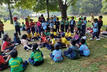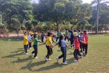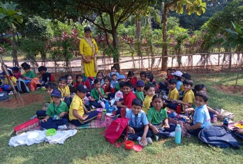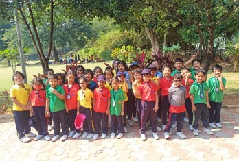 Students of Class 1 went to Vuda park along with 8 teachers, 1 Physical Education Teacher and 2 ayahs. The children played under the tree shade. They swung on see-saw and went down the slides.In the park they saw many types of flowers.There were Tulips,Daffodils and Roses of all colours. Children interacted,danced and played with other children and even shared their snacks with each other. They understood that one should buy a ticket to enter the park.Children had a wonderful experience of travelling by the school bus.They returned to school at 1:00 pm with the same excitement.