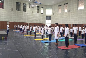 On this occasion, 64 students of Little Angels School from classes 7 to 9 and NCC Girl Cadets and Boy Cadets participated in the Yoga Programme organised by S3 Sports Arena in collaboration with Decathlon at the new VMRDA Indoor Stadium near Alwar Das Grounds MVP colony, Visakhapatnam.