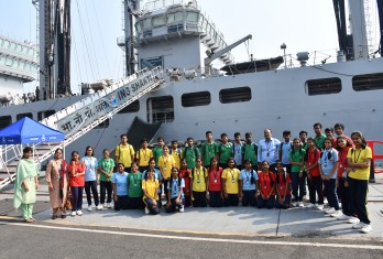 The students were briefed about the various activities and details of the ships through a photo gallery arranged for them.