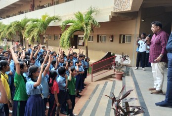 After the prize distribution program, students presented skits in various languages. Students of classes 4 & 5 presented mythological charcters - Dasaavatar, students of class 7 presented an English skit on an episode of‘Sherlock Holmes’ and a Hindi skit - ‘Akbar and Birbal’ depicting the wittiness of Birbal . The students of class 8 presented a humorous Telugu skit ‘Paramanandayya Shishyulu’ and students of classes 9 & 10 presented motivational Speeches on ‘Patriotic Leaders’. Their performances were commendable.