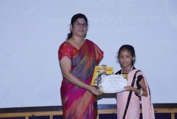 The celebrations started with the offering of floral tributes to Lord Ganesha and Telugu Talli Idol followed by a welcome dance by the students of secondary school. A play was enacted highlighting the importance of Telugu language which showcased students’ oratory skills and confidence in dialogue delivery. A skit on the benefits of water conservation was well depicted by the students of classes 6 and 7. A skit on the famous incidents in the life of Lord Krishna was presented by the students of classes 4 and 5 which was very enchanting and mesmerising. Ashtaavadhana presented by the students of secondary school was well appreciated by the audience.The winners of the various competitions, conducted by Tarangini Club were awarded by the Principal and the Headmistress.