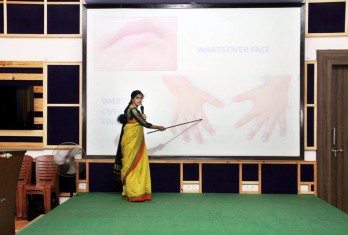 A three day awareness programme on skin and its hygiene was conducted in the school for students and the parents of classes 7th, 8th and 9th on 17th, 18th and the 20th of November. Dr. Swetha Madhavi Yerroju, M.B.B.S, D.D.V.L, a practising dermatologist, who is also an alumna of the school conducted this programme. She spoke on the various skin related problems like allergies, warts, pimples and other major infections and suggested preventive measures. She gave a power point presentation on the skin problems and healthy hand washing tips. The later part of the programme was an interactive session in which students and parents participated actively .On the concluding day of the programme the school founder, Shri.M.Venumohan, felicitated Dr.Swetha, who is an active member of (IADVL), Indian Association of Dermatology, Venereology and Leprosy. Speaking on the occasion the school Founder said that he took great pride in felicitating the alumni, it is always a proud moment for the Alma mater to witness the remarkable achievements of the students. He recollected, that she was a very brilliant student, she was the topper and winner of the Pratibha Award. She had won number of Gold, Silver and Bronze medals in Painting at State and National levels in her school life. He also congratulated the efforts of her parents in shaping her career. Dr.Swetha in her response thanked the school founder who she said, was her guru and role model and how her initial days of perfect schooling helped her to become an all-rounder. The programme ended with a formal vote of thanks.