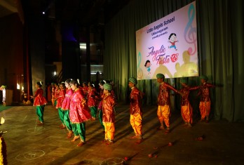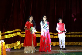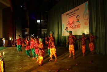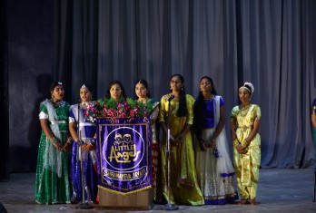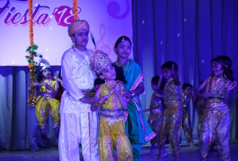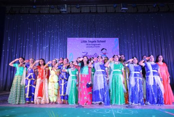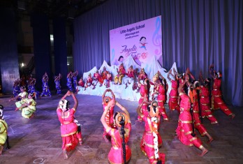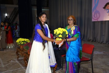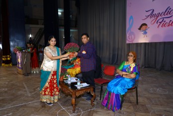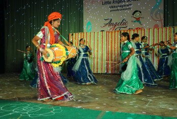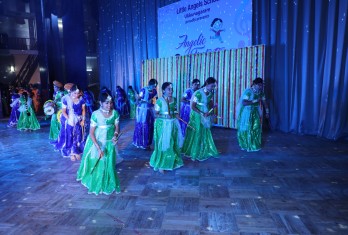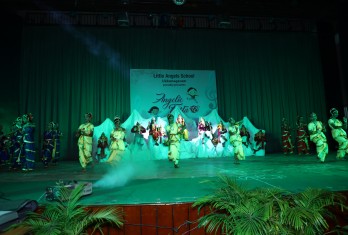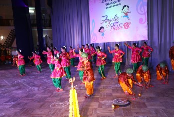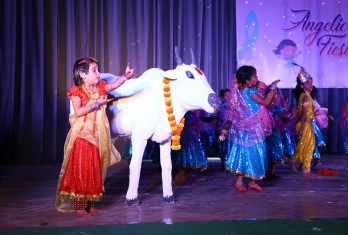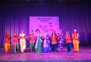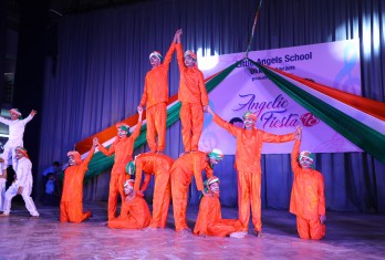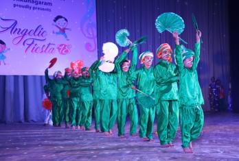 The cultural event began with a devotional dance performance on Lord Ganesha. The little Kiddies of kindergarten rocked the stage with a party dance. The Little Krishnas and Gopikas danced to the tunes of mesmerizing songs on Krishna – ‘Krishna Leelalu’. The students took the audience to the beauty of Kashmir and Gujarat with their spectacular folk dance. Amusing scenes from the movie ‘Maya Bazar’ filled the air with laughter. Children also rendered melodious inspirational songs. The grand finale of Angelic Fiesta ’18 was a mesmerizing patriotic medley dance that won the appreciation of one and all.