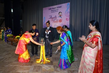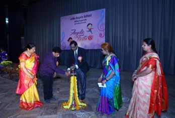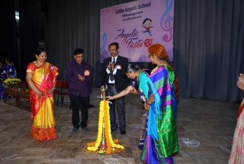 Little Angels School celebrated the school Annual Day ‘Angelic Fiesta18’ on 6th January with a glittering bonanza of fun, music and dance. The programme began with an elegant welcome dance followed by the auspicious lighting of the lamp by the dignitaries- Chief Guest Sri Kishore Chandra Das, Director Personnel of RINL, the Founder Chairman of Little Angels Schools Sri M. Venu Mohan, Director Smt M.Ranganayaki, Principal Smt.P.Visalakshi and Headmistress Smt T.Arundhati.
