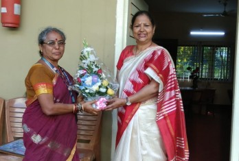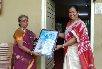 Director of the school Smt M.Ranganayaki congratulated Smt Rambai and presented her a bouquet amongst the teachers of Telugu department and heads of the school. Smt Ranganayaki appreciated Mrs.Rambai’s devotion to duty and love and passion for teaching.