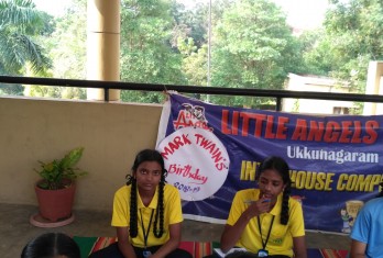 Students of classes 1 & 2 participated in pictorical story writing competition. Students of classes 3 to 5 participated in story telling competition where they narrated short stories written by Mark Twain.