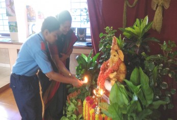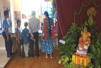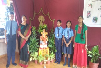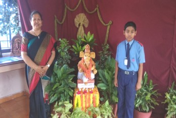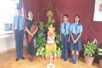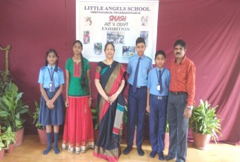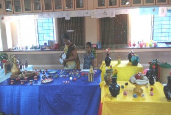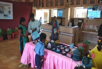 ‘Splash’, the Art and Craft exhibition was organised in the school on 28th March, 2019. The exhibition was inaugurated by the school Director Smt M.Ranganayaki by lighting the lamp. She offered prayers to the idol of the Eco-friendly lord Ganesh made by P.Nagesh of class 7th.
