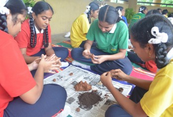 Students of class 9 prepared seed balls that contained a seed wrapped in a mixture of clay and compost and then dried. Seed balls keep the seeds safe until conditions are favourable for germination.