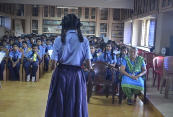 As a part of SEWA Programme the Telugu Club - Saraswastha Parishath conducted a cultural programme on 21.08.19. The struggle of Rani Rudrama Devi was presented very enthusiastically through Burra Katha by the girls of class 8th. Students also presented a skit based on the Panchatantra story on friendship. A monologue on Gurram Jashuva, the famous Telugu poet, was also presented. All the students participated enthusiastically. The Principal appreciated the performance of the children and urged them to present many more much programmes to improve their communication skills.