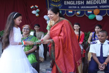 The patriotic fervour was vibrantly alive in the Bulletin Board displays and speeches delivered by the Director Smt. Ranganayaki, student chief guest Master A. Chandra Siddhardha of class 10th (SB), who stood first in the Formative Assessment – I and the toppers of the academic year 2016-17 (CBSE & SB). The cash awards were presented to the toppers of the academic year 2016-17 (CB & SB) to mark their excellence.