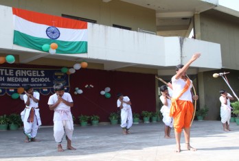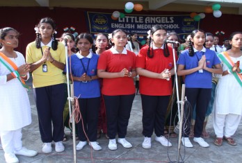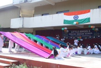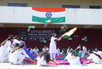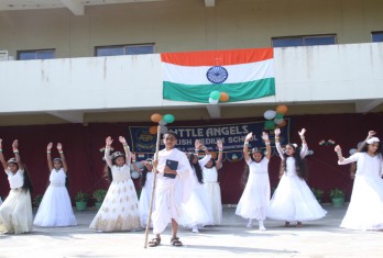 NCC ‘A’ certificates were awarded to NCC students of Little Angels for their proficiency. Various cultural items like patriotic songs were presented by the choir. A Dance Drama depicting the Freedom movement was presented by the students of secondary & primary classes. A colourful saree drill was performed by the students of secondary which added more colour to the programme. The students made the environment very patriotic and vibrant.