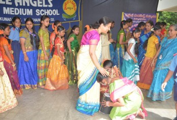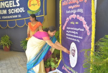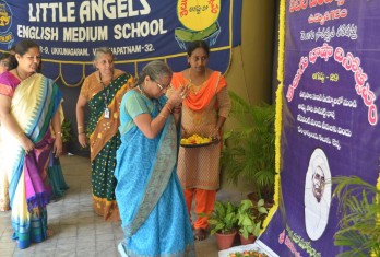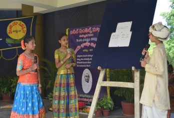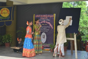 The school celebrated ‘Telugu Bhasha Dinotsavam’ on 29th August. The day marks the birth anniversary of Sri Gidugu Venkata Ramamurthy, who popularized Telugu language among the common people by writing in a style that could be understood by the common mass. The Director Smt.M.Ranganayaki, Principal Smt.Visalakshi and teachers offered floral tributes to the portrait of Gidugu Venkata Ramamurthy.