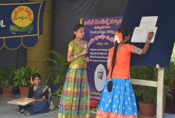 A special assembly was organized by the Telugu Club ‘Saraswatha Parishath’ wherein children presented poems, an article, a song and a skit signifying the importance of Telugu language. “Desa Bhasha Landu Telugu Lessa” as quoted by Sri Krishnadevaraya means that among all the languages spoken in the nation, Telugu is the best. Rani Rudramma Devi’s rebellion against the British was portrayed through a ‘Burra Katha’ – a Telugu art of storytelling. Director Smt.M.Ranganayaki addressed the students and shared her opinion on the importance of Telugu. She also appreciated the work and effort made by the students and Telugu teachers in presenting an excellent programme.