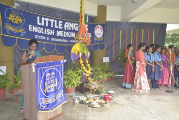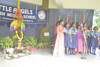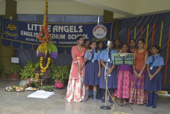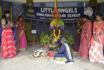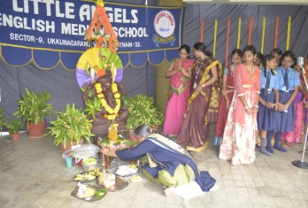 On this occasion a special puja was offered to Lord Ganesha by the Principal Smt.P.S.Visalakshi. Students presented an article signifying the importance of the festival. A melodious song on Lord Ganesha was also presented by the students. In order to bring awareness about the 'Go Green Mantra' the students of Little Greens Club gave a demonstration on the importance of clay idols and the procedure to be followed during the immersion of the idols. Students and teachers presented clay idols to the C.M.D of RINL, the Directors of RINL and officials of Town Administration Department, RINL.