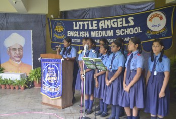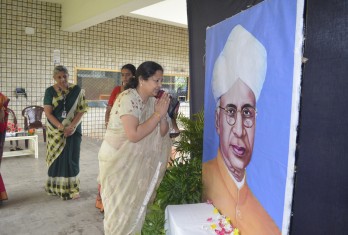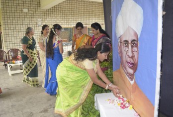 A special assembly was organised on this occasion. The school Director, Principal and Headmistress paid floral tributes to the portrait of Dr.S.Radhakrishnan. An article highlighting the values of a teacher was presented in the assembly. Students presented a melodious song, thanking teachers for motivating and guiding them. The members of the student council in their message praised their teachers for their untiring efforts in nurturing them. The school Director greeted the teachers and advised the students to respect and show gratitude to the people who bring about a change in their lives. The Principal advised the teachers to adopt various methods to bring out the best in the students.