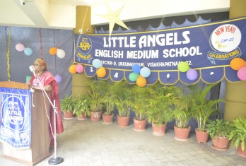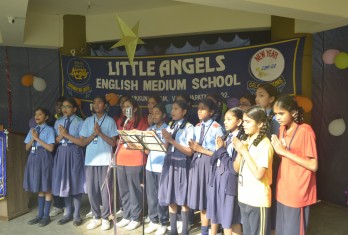The Principal addressed the school and conveyed New Year greetings. She congratulated the students for their performance throughout the year . She encouraged the 10th class children to perform well in the upcoming AISSE exams . She appreciated the children for their new thoughts and resolutions and advised to implement them with sincerity throughout the year. The Headmistress wished the students to have a successful year ahead.