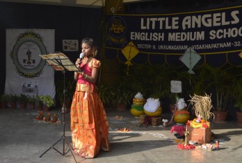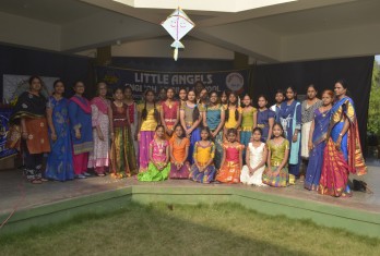 The school has celebrated ‘Sankranthi Sambaralu’ on 6.1.2020 . The celebrations reflected village atmosphere that included colourful Rangoli, Bhogi mantalu, animal worship and delicacies of Andhra Pradesh. Children dressed in traditional attair took part in cultural activities. The school premises was wonderfully decorated with Gobbemmalu and Bommala Koluvu. Children beautifully recited several poems on the festival. The school choir presented a melodious medley which included the significance of Bhogi, Sankranthi and Kanuma festivals.