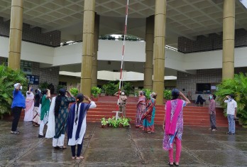 The 74th Independence Day was celebrated in the school in a simple , solemn ceremony on 15th August ,2020. The Principal hoisted the National flag in the school premises in the presence of the Headmistress , the NCC ANO along with the administrative and contingent staff of the school. The Principal , HM and staff saluted the National Flag and sang the National Anthem. Despite the absence of children due to the prevalence of safety measures in view of Covid-19, patriotic fervour pervaded the atmosphere on this occasion.