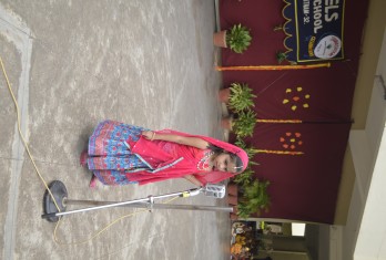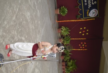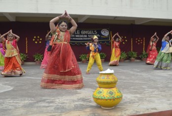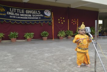 A classical dance depicting the life and playful activities of Lord Krishna was performed by the students. The echo of the soulful song and music was extremely spell binding. Tiny tots dressed up as Little Krishna and Gopikas put up colourful and delightful appearances enthralling all present with their captivating smiles and naively delivered dialogues. A mesmerising air of innocence, devotion and insight prevailed during the whole programme.