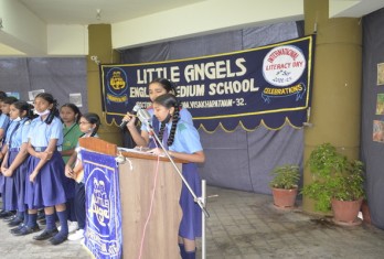 International Literacy Day was celebrated by the English Club ‘Alphabet’ on 8th September 2022, in an outdoor assembly. Students displayed quotes and information on Literacy & its importance in the Display Board. A conversation was presented to bring awareness to mark the importance of Literacy. Dance was performed by the Primary students depicting the necessity to read and write. Quotes on Literacy Day were presented to enlighten the young minds. A melodious song was rendered by the students of secondary classes to understand the urge of continuous learning wherever they are. Principal Smt. Visalakshi madam, in her speech advised the students to make use of the class library, word walls put up in the classrooms to improve their knowledge and participate in assembly programmes to improve their listening and speaking competencies. She also gave suggestions to improve their listening, speaking competencies and communication skills, on this occasion. The Art Club ‘Splash’ presented an article on the occasion of the ‘Birth Anniversary’ of Sri Vaddadi Papaiah, a renowned Artist and writer. The programme ended by proposing the vote of thanks followed by the National Anthem.