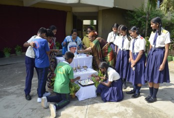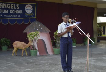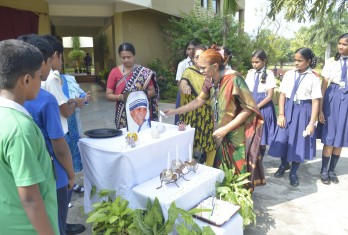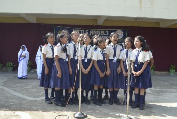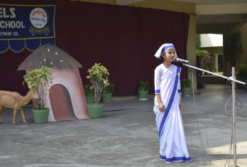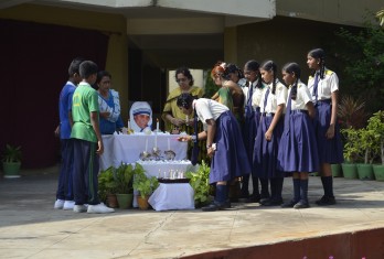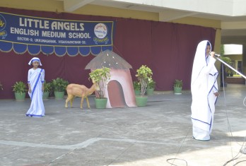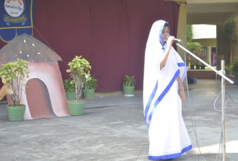 An article was read about Mother Teresa. Students dressed in Mother Teresa’s trademark blue-rimmed white cotton sari told the inspiring quotes by Mother Teresa.