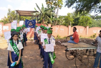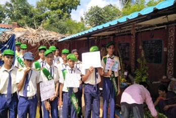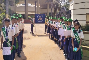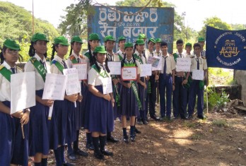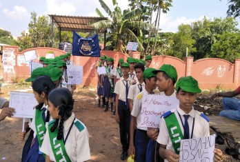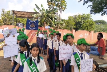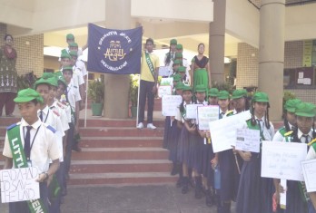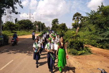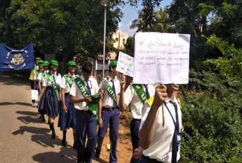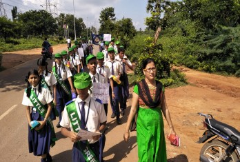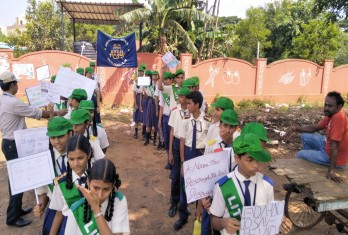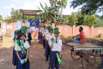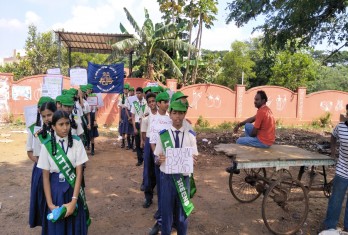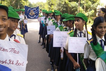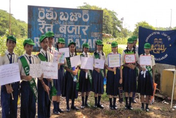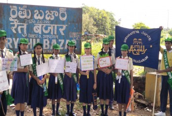 Students went on a rally carrying placards about protecting land and restoring our Country’s valuable national resources. They went to the ‘Rythu Bazar’ near the school and requested the farmers to avoid the use of harmful chemical pesticides and thus protect land and deliver more sustainable agriculture.
