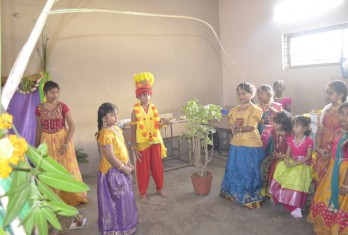 A room was decorated where the three- day celebration was depicted and all the relevant items of the festival were displayed. The children explained and performed dances to mark the occasion.