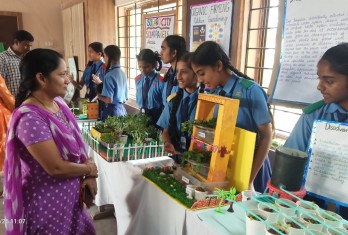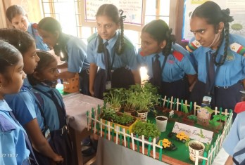 In the school assembly, floral tributes were offered to the portrait of Sir.C.V.Raman by Principal , Headmistress and Science teachers. An article on the importance of National Science Day was presented in the school assembly. Two days science exhibition on the theme ‘Global Science for Global Well Being’ was organised in the school. Principal Smt.Visalakshi inaugurated the Science Exhibition.