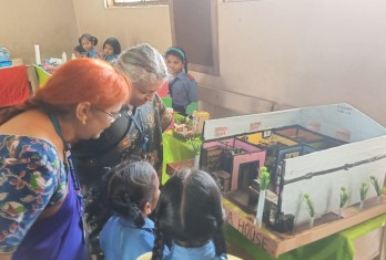 Students from classes 1-9 presented various projects like Geothermal Power Plant, Filtration Unit, vacuum cleaner, different rooms in a house, living and non-living things, Blind Stick, Helmet (wear it to gear it), solar city, wind turbine etc.