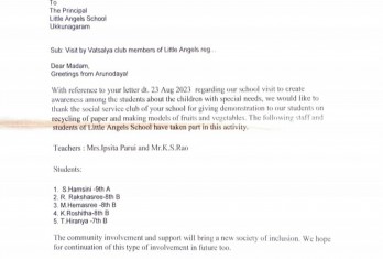 The members of the Vatsalya club of Little Angels School, Ukkunagaram visited the Arunodaya School for children with special needs in Ukkunagaram on 28th August,2023.