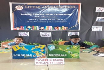 As a part of the celebrations, various competitions and book reviews were conducted for the students. On 15th and 16thNovember a book exhibition was held in the library, wherein books related to all subjects including reference books and encyclopaedias were exhibited. The students of classes 6 to 10 visited the library and browsed the books. For the students of classes 4 to 8 ‘Scabble Board’ competition was conducted for the winners of the first round on 18th of November. Scabble is a good way to improve vocabulary. For classes 9 and 10 ‘Designing Library Logo’ competition was conducted. Creative and Amazing library logos were designed by the students.
