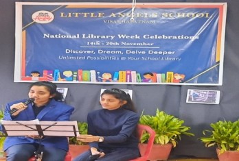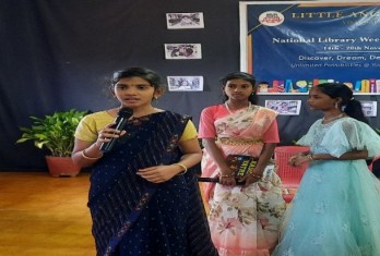 Students also exhibited role-plays of ‘Sudha Murthy’ as a motivational speaker, Anne Besant, Sarojini Naidu, Indira Gandhi and News Readers. As a token of reward books and badges were awarded to the best readers. Badges were awarded to the winners of the competitions. The prizes were awarded by Principal Smt. Visalakshi and Head Mistress Smt. Arundhati.