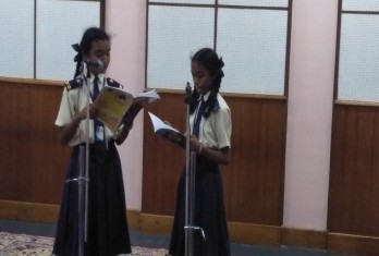 Students of our school from classes 5th to 10th visited the All India Radio Station, Visakhapatnam. A programme was recorded in which they presented a Sloka, Role-play, Patriotic song, Devotional song and Poems. They also presented a conversation on Balala Dinotsavam. The programme was recorded at 927 Hz frequency and was broadcast on 28.10.17 at 2.30 pm.