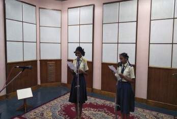 The students had an exciting and thrilling experience. They also learnt how recording is done in the All India Radio Station.