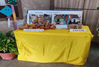 A colorful stall was put up showcasing the cultures and traditions of Andhra Pradesh and Assam. Principal Visalakshi madam inaugurated the stall and addressed the students by making them aware of the two states.