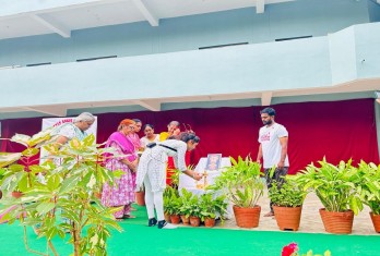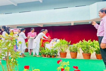 The yoga session that followed was conducted by Mrs. Vamsi Priyanka, PET and Yoga instructor of our school. It included a series of warm up exercises, loosening exercises, standing and sitting asanas and pranayama. Each posture was demonstrated with clarity allowing the participants to experience the harmony of movement and breath. The session culminated with a short period of relaxation and meditation, fostering a sense of inner calm and focus.