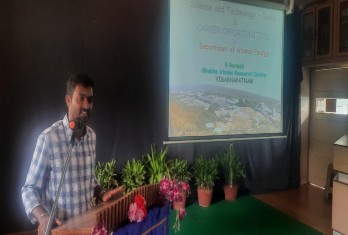 Mr. Ramesh delivered an engaging presentation on the growth of science and technology in India, from the genius of Aryabhatta to the visionary leadership of Dr. A.P.J. Abdul Kalam. He spoke about the groundbreaking work of DRDO, ISRO, and BARC, which have placed India on the global map of scientific excellence.
