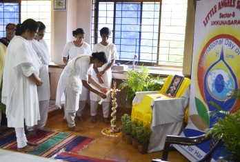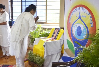 Floral tributes were paid to the portrait of Yoga Guru – Patanjali after lighting the lamp. Yoga Therapist Smt.Sarani Devi visited the school and addressed the students. She spoke about the importance of mind, body and soul nourishment through Yoga. Smt.Sarani Devi demonstrated several yoga – asanas with proper scientific instructions. Children got the chance to know how yoga embodies unity of mind and body.