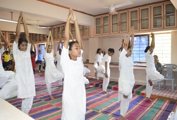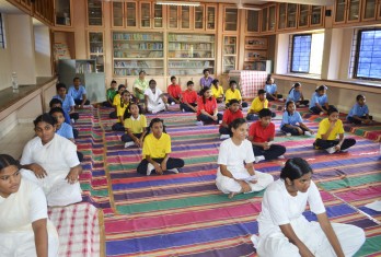 School Director Smt.M.Ranganayaki also practiced Yoga along with the students. She encouraged the students to practice Yoga every day.