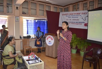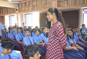 To mark the occasion, Dr M.Akhila, an alumna of the school visited the school and enlightened the students about the adverse effects of electronic devices on students through an interesting, lively and informative PowerPoint Presentation. Dr Akhila told that overuse of electronic gadgets like smart phones and computers can cause back pain and weak eyesight among children. She also spoke about the benefits of effectively balancing academics and extra-curricular activities.