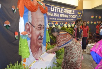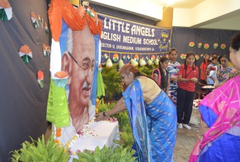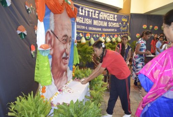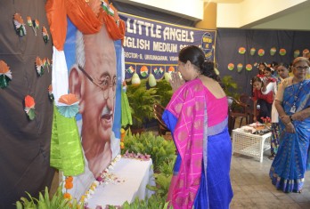 Our school celebrated the 72nd Independence Day with great fervour, zeal and zest. The programme kicked up by paying floral tributes to the portrait of the Father of the Nation, Mahatma Gandhi.
