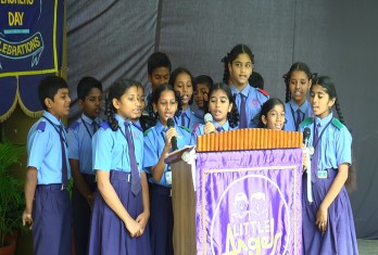 A special assembly was organised on this occasion. The Principal Smt.Visalakshi and Headmistress Smt.Arundhati paid floral tributes to the portrait of Dr.Sarvepalli Radhakrishnan. Children presented poems and an article which highlighted the values of a teacher. The members of the student council in their message praised their teachers for their untiring efforts in nurturing them.
